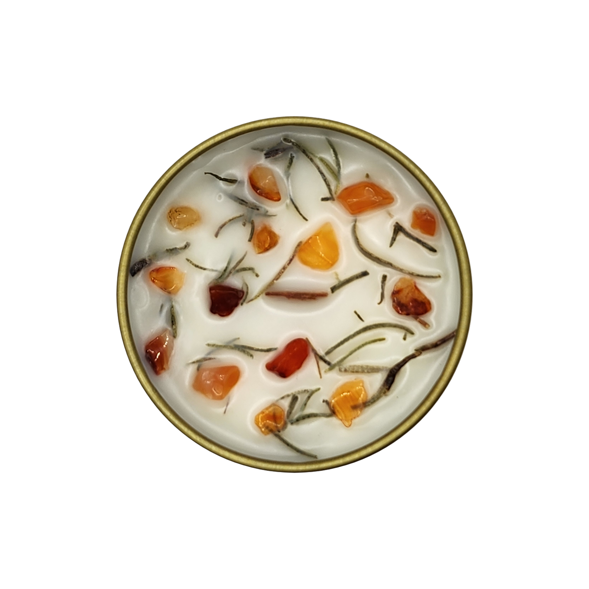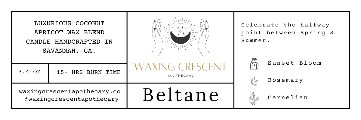 This fragrance blends fresh spring blossoms and tangerine with elements of sea salt, creamy vanilla, and sun-weathered cedar for an uplifting and energizing experience. The sprinkle of rosemary and carnelian also promotes energy and fire, making this the perfect combination for celebrating Beltane.