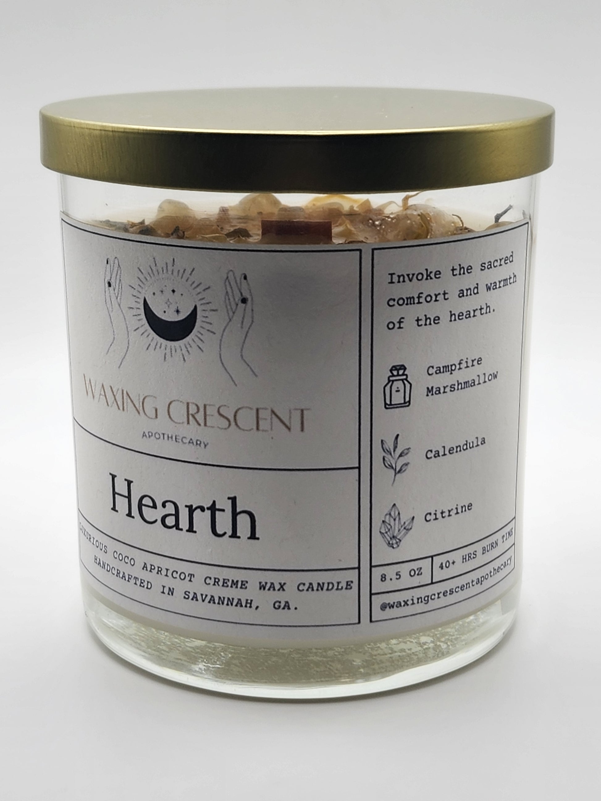 Adorned with calendula petals and citrine, Hearth radiates healing, joy, and prosperity - just like the ancient hearth-fires of old, a beacon of warmth and blessing.