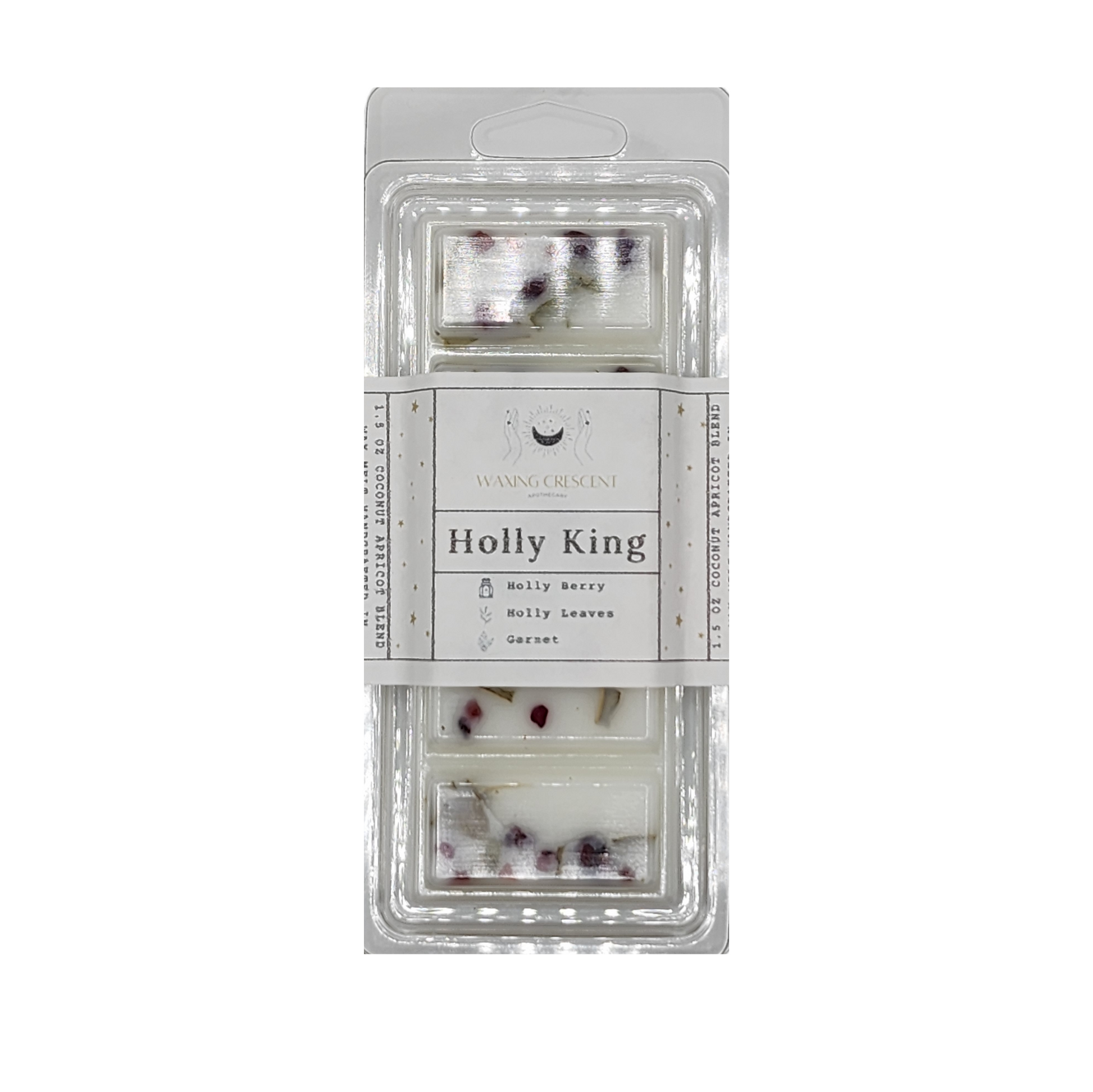What better way to represent the King of the Winter Solstice than with this incredible evergreen and berry scent! The sprinkle of holly leaves on top symbolizes life in the darkest of winter and brings good luck, while garnet gives protection, hope, and the renewal of energies.