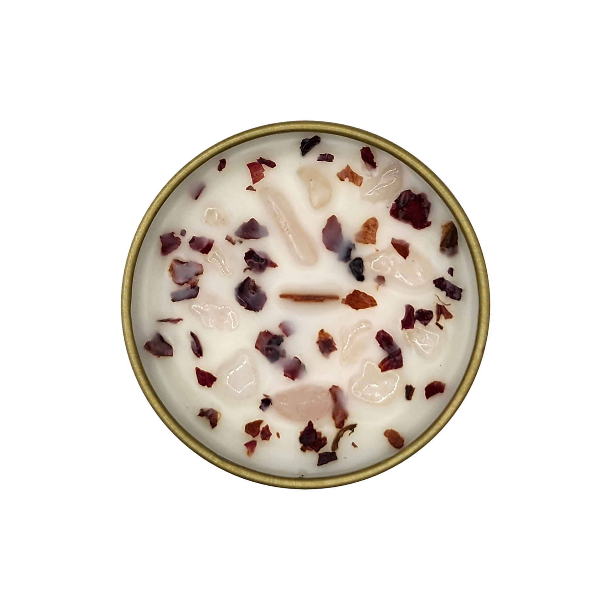 This intoxicating blend of white and green florals mixed with lemon peel and finished with a touch of powder, creates a sultry yet sweet scent that evokes the feelings of pure love. Rose petals have long been symbols of love and romance, while rose quartz enhances feelings of harmony, trust, and unconditional love in all forms.