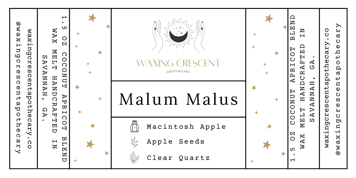Inspired by the haunting first episode of Chilling Adventures of Sabrina, where she bites into the malum malus to glimpse her fate, this candle channels the same mystical energy of wisdom, temptation, and hidden truths. Its fragrance opens with crisp apple and fresh green leaves, brightened by the juicy sweetness of pear. Beneath, a warm base of vanilla and cedar lingers, grounding the fruity brightness with depth and quiet comfort. While this candle may not make you all-knowing, its enchanting aroma is crafted to clear the mind, ease stress, and open the door to insight. Adorned with apple seeds and clear quartz - both tied to divination and mental clarity - it beckons you to uncover the divine secrets within and illuminate the path ahead.