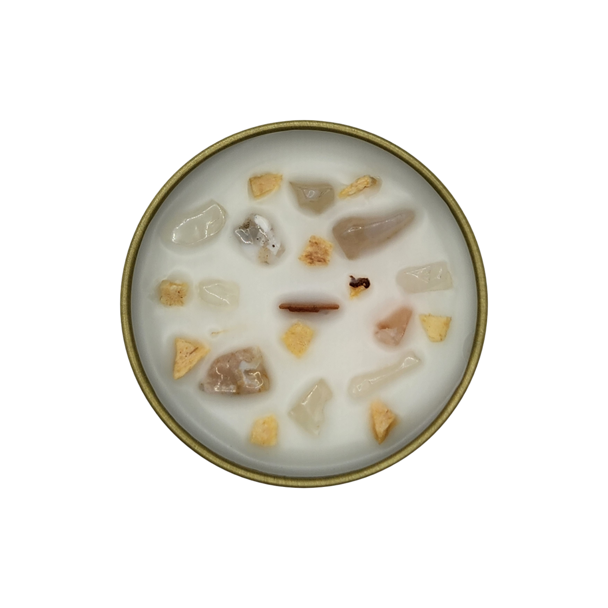 The pomegranate cider scent of this candle pays homage the story of Persephone both literally and symbolically. It is the fruit that Hades had her eat to ensure she would always return to him. It is also a fruit associated with fall and winter, when Persephone would be recalled to the Underworld. Far from dark and depressing, there is a brightness to the scent that gives it year-round appeal and speaks to Persephone's other badass title of Goddess of Spring. The sprinkling of asphodel, flower of the Underworld, represents life in death, and the flower agate helps with grounding, hopefulness, and blossoming into your full potential - just like Persephone.