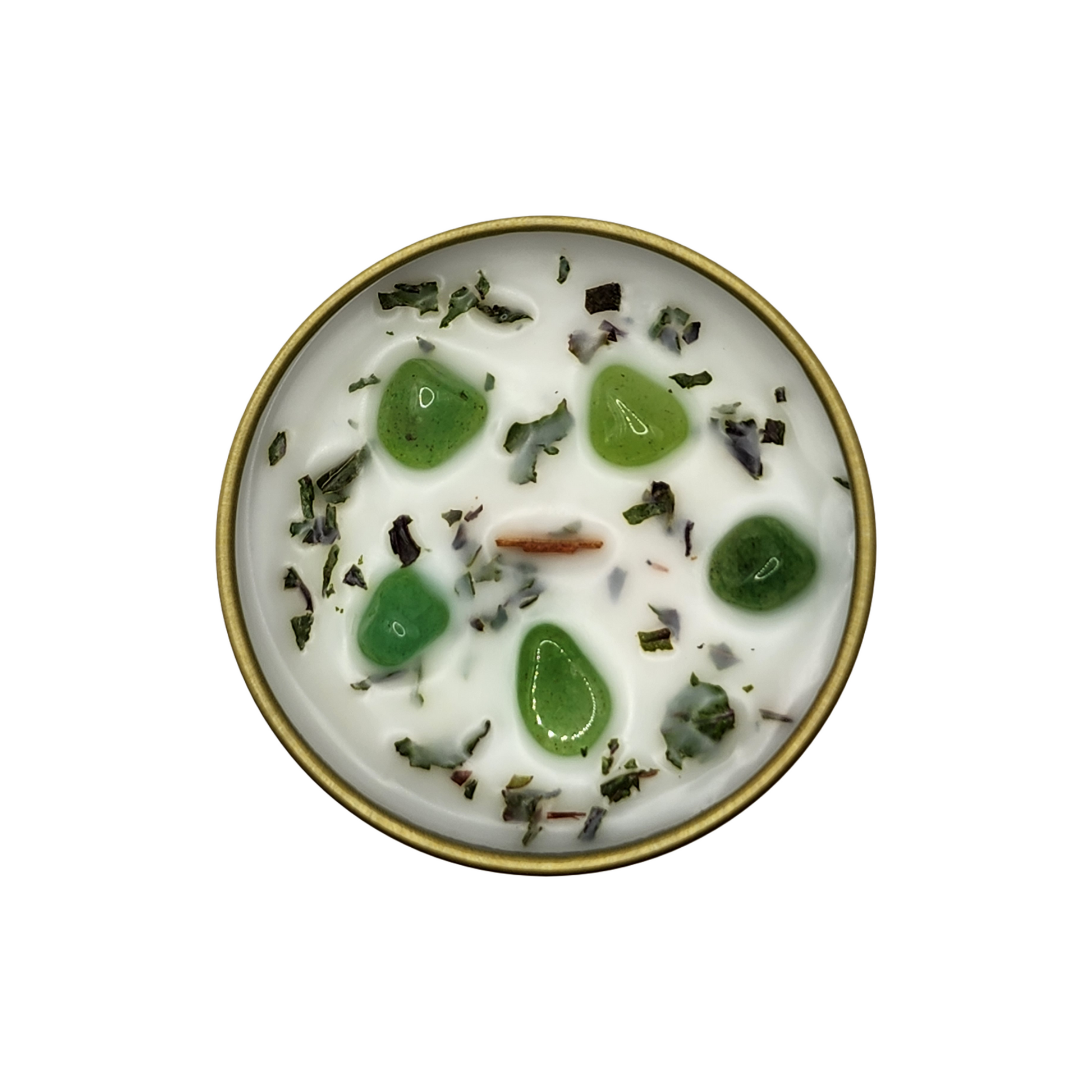 Block negative energies and protect yourself from harmful vibes with Protection! This playful, yet sophisticated tropical scent brings to mind the classic smell of coconut and banana sunscreen, making it the perfect scent for a protective candle. Coconut is seen by many cultures as a symbol of protection due to the fruit's hard outer shell, and is used in rituals for cleansing and purifying. The mint and aventurine on top also helps to ward off negativity and promote positivity.
