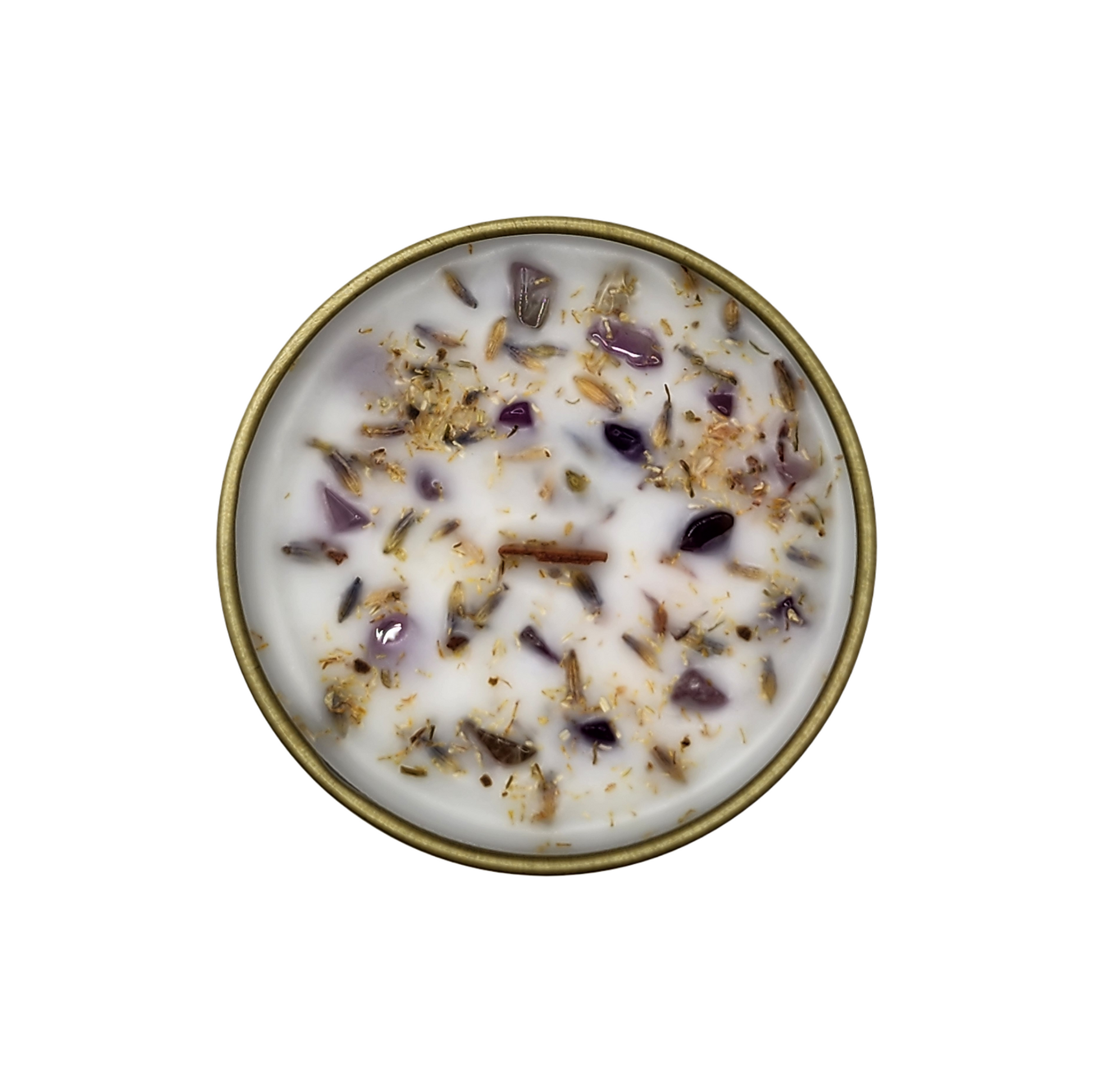 This relaxing white sage and lavender scent helps to soothe and prepare your mind and body for sleep. Chamomile is also a very soothing herb that aids in sleep, while amethyst provides protection from negative dreams and insomnia. Burn this to unwind in the evenings for a deep, restful, and protected sleep. Just remember to blow it out before your head hits the pillow!